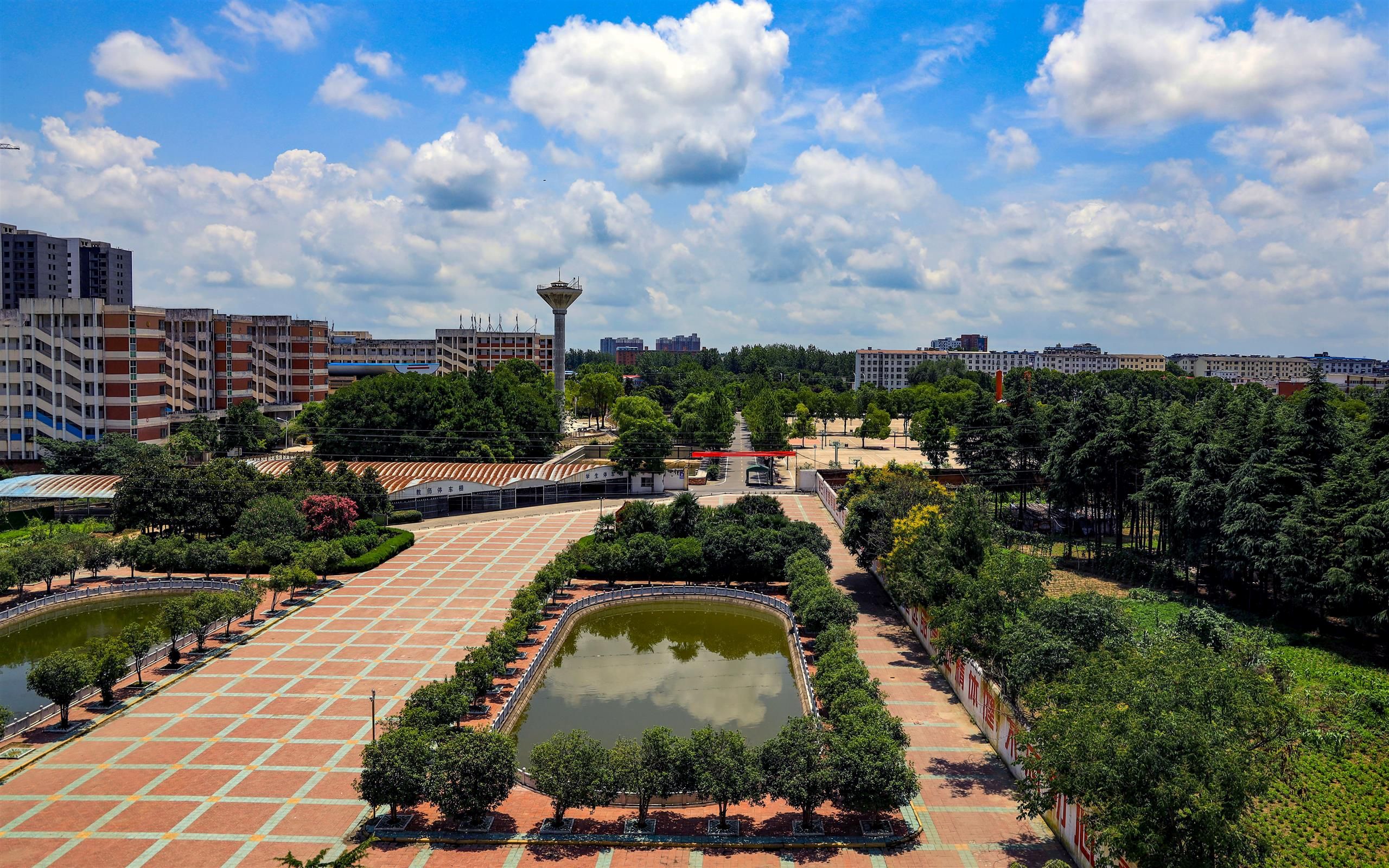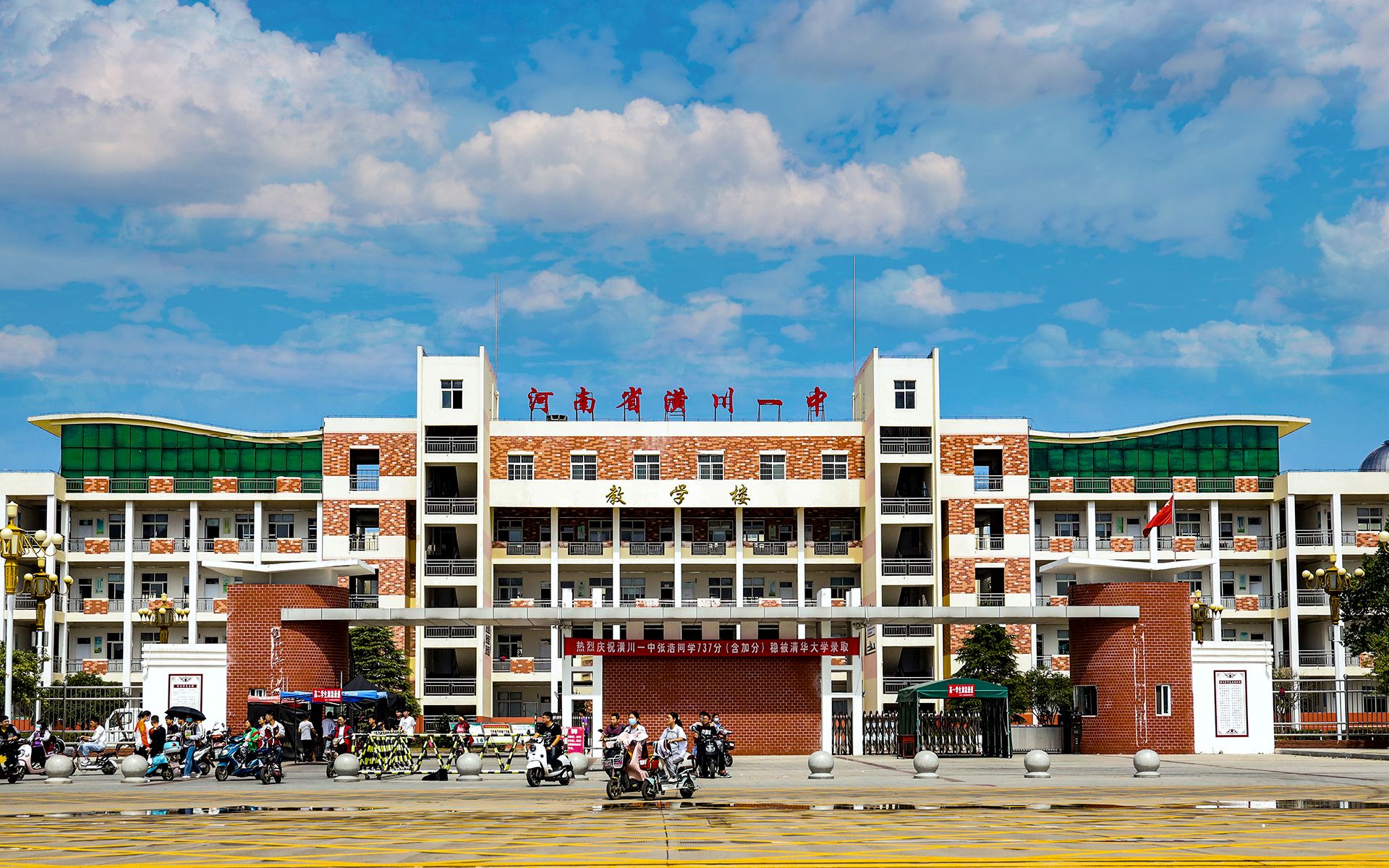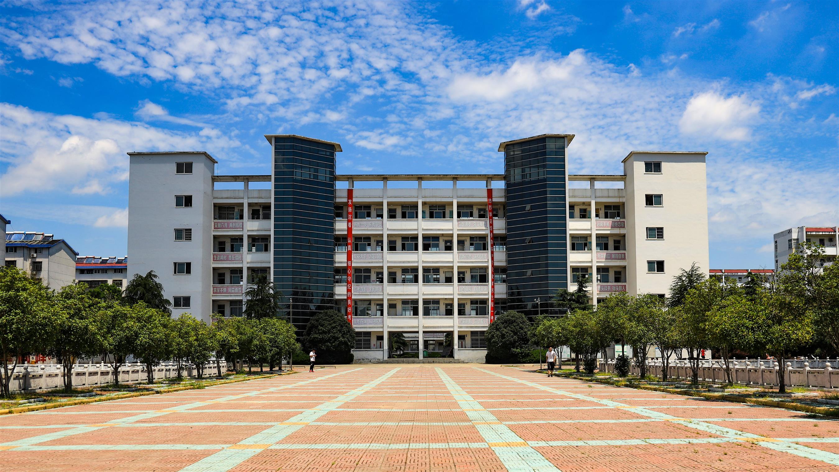 蓝天白云,夏天的校园依然有求学孩子的身影